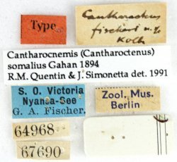 autres noms | Cantharocnemis Cantharoctenus somalius (Lameere, 1902) Cantharoctenus fischeri (Kolbe, 1898) Cantharocnemis Cantharoctenus fischeri (Lameere, 1903) Cantharoctenus floweri (Lameere, 1912) Cantharocnemis Cantharoctenus floweri (Lameere, 1912) Cantharocnemis Cantharoctenus fowleri (Capra, 1939) |